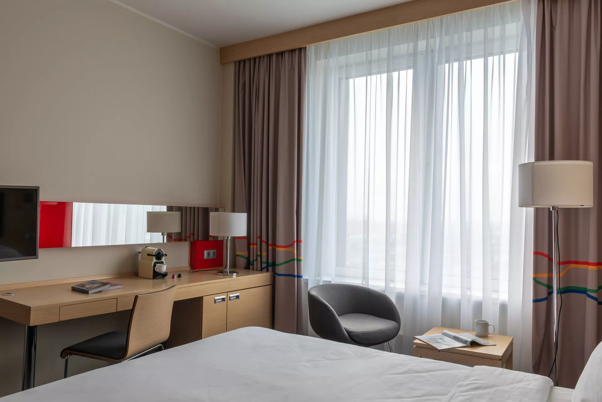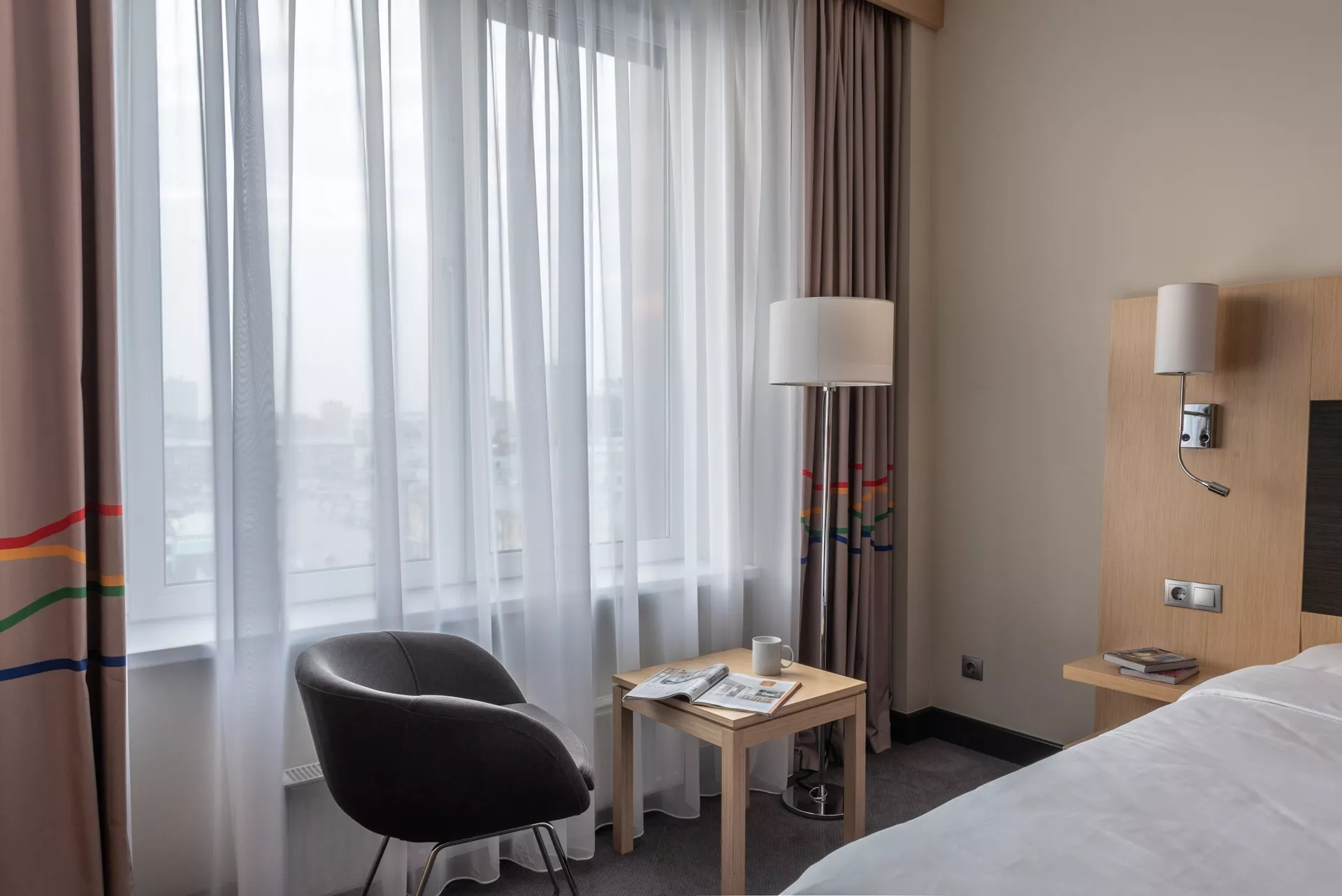 Cosmos Novosibirsk Hotel насчитывает 150 светлых номеров, выбирайте и снимайте любой категории, от стандарта до люкса. В каждом номере – бесплатный W-fi, ЖК-телевизор, индивидуальное кондиционирование. При условии раннего бронирования гостиницы часто предоставляем скидки!
